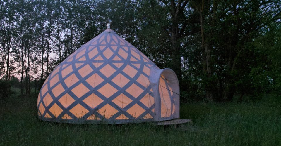 NOMAAD is a lightweight, easy to assemble cupola based on a bulged cube – and triangles. The elaborate details and structure of simple elements and strong construction emerged as a result of many years of work by the designer. The cupola is inspired by the temporary housing of nomadic people.